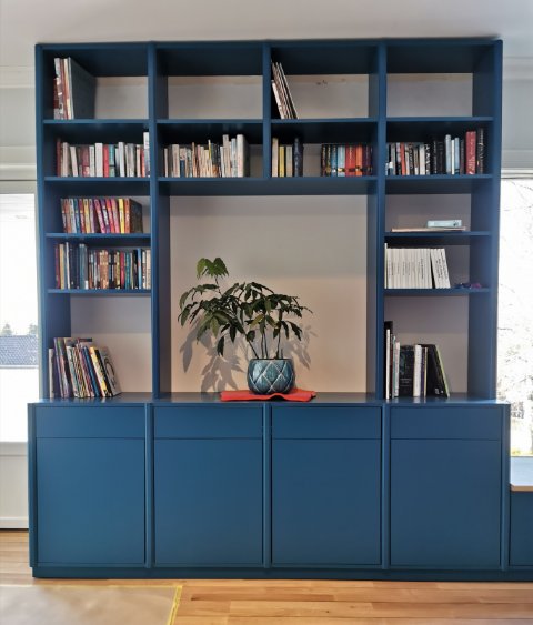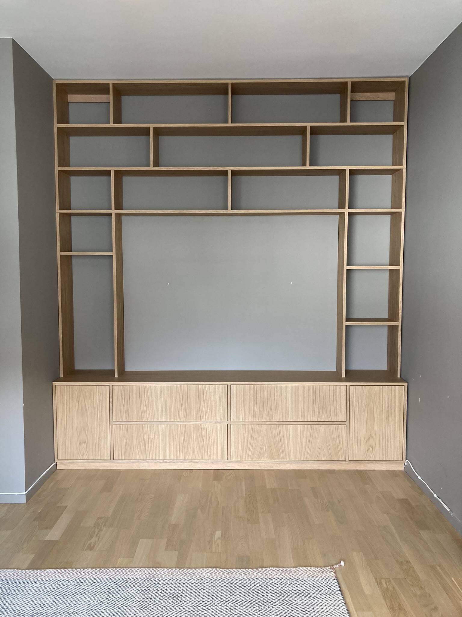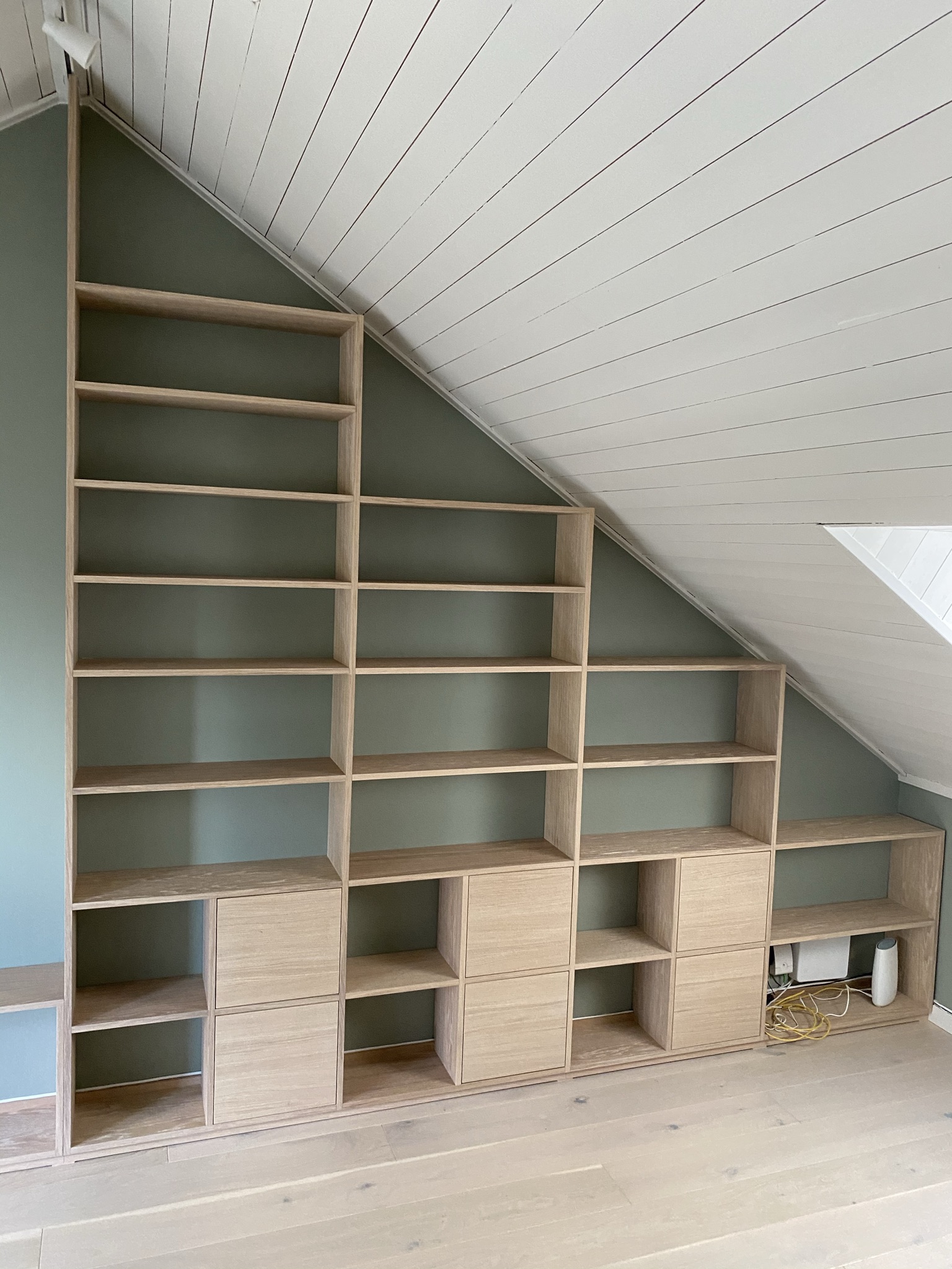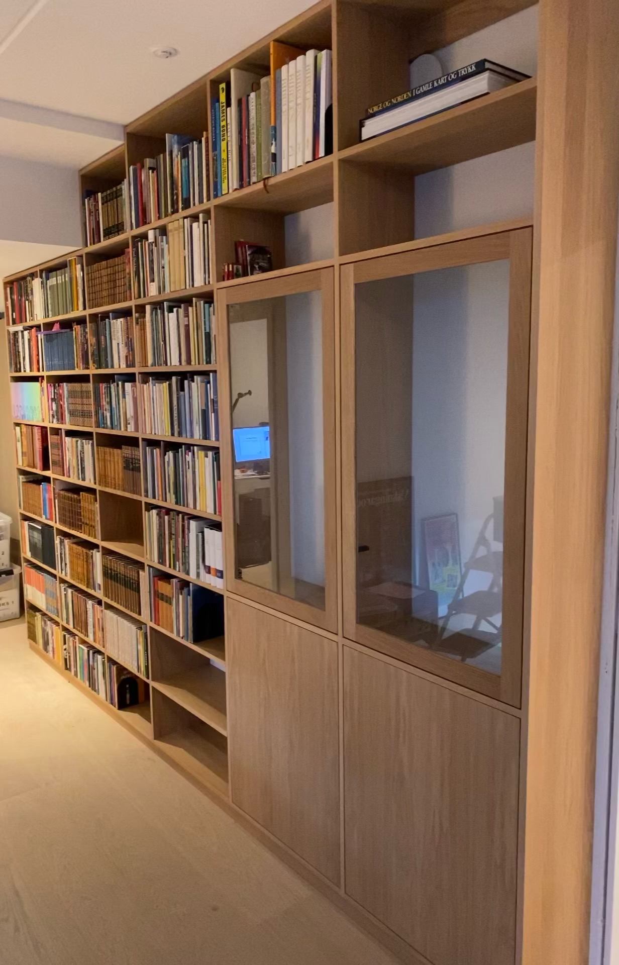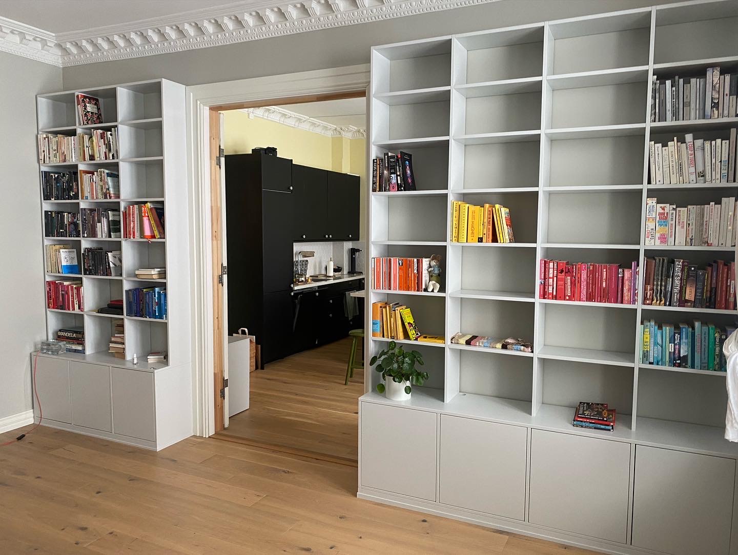 Våre skreddersydde bokhyller gir rommet karakter og orden, tilpasset dine bøker og stil.