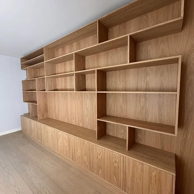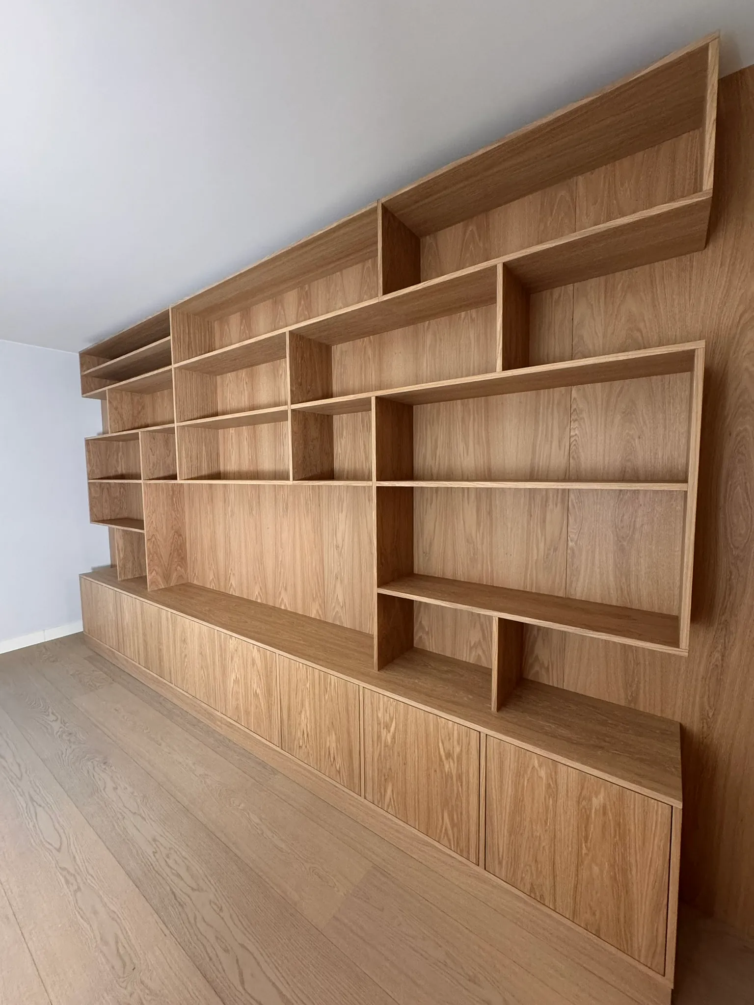 Våre skreddersydde bokhyller gir rommet karakter og orden, tilpasset dine bøker og stil.